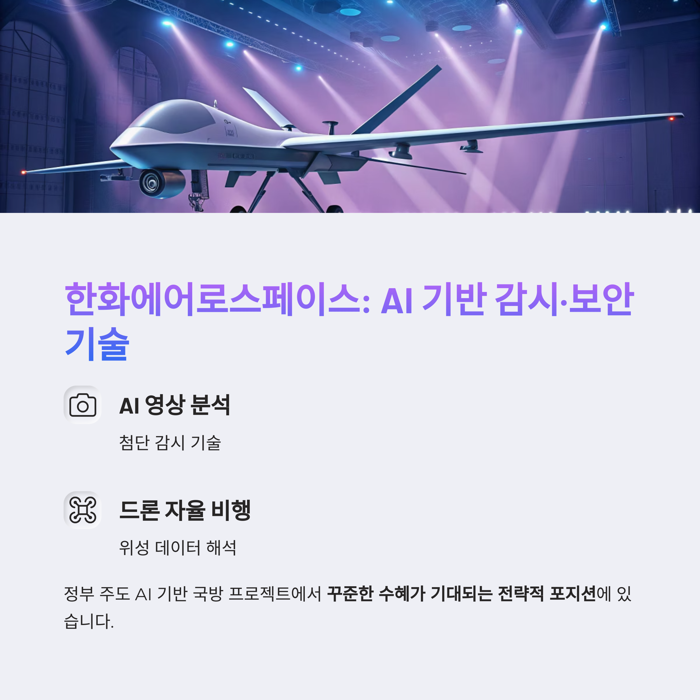 ⑦ 한화에어로스페이스 – AI 국방·감시 시스템 기술력 보유