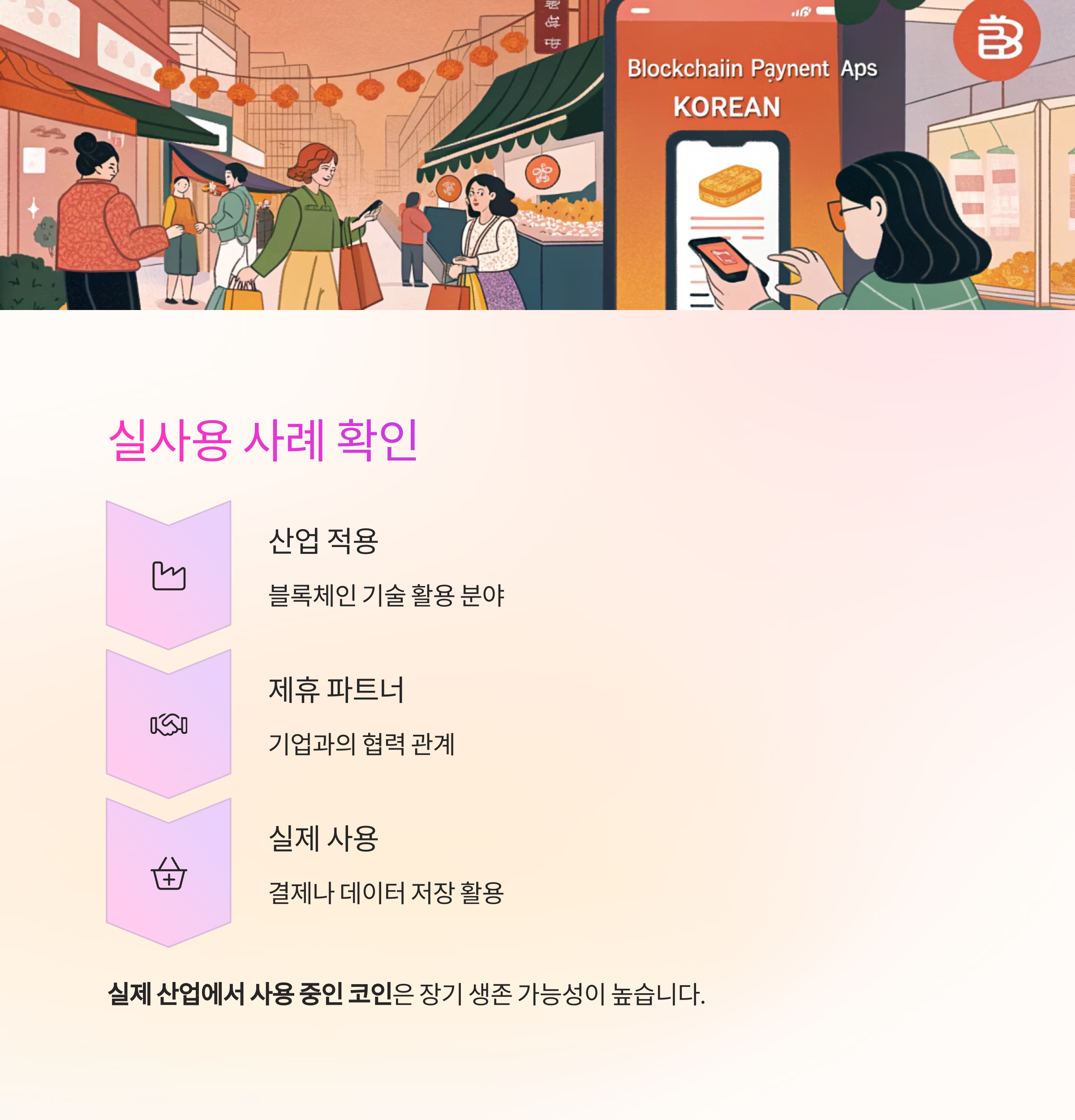코인이 단순한 암호화폐가 아닌 실제 산업에서 사용 중인지 확인하세요