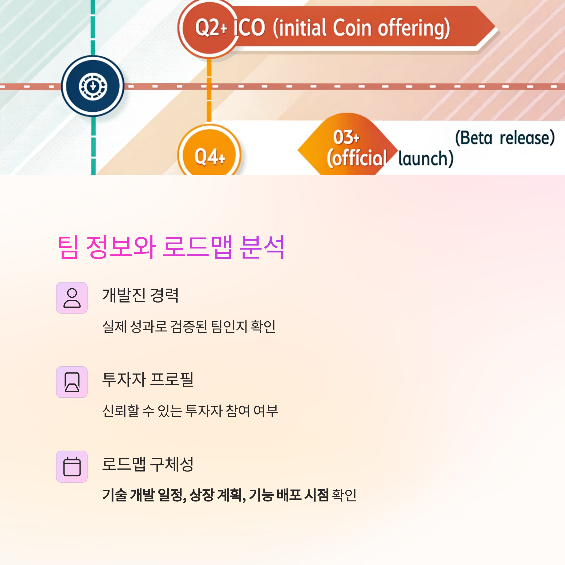 개발진의 경력, 투자자의 프로필, 로드맵의 구체성은