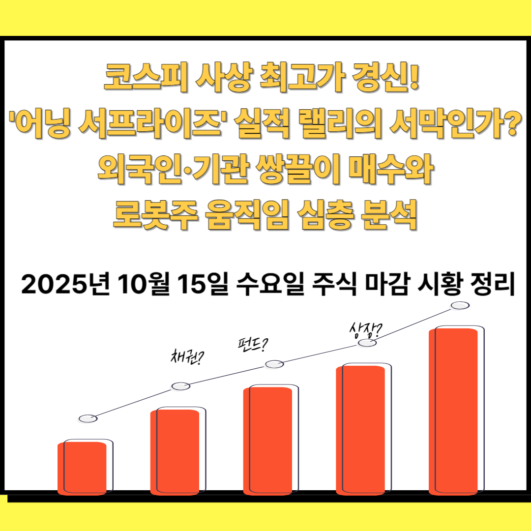 오늘 시장은 '실적 장세'의 확실한 서막을 알린 하루였습니다. 코스피 사상 최고가 경신은 단순히 숫자의 의미를 넘어, 한국 증시의 기초 체력이 강화되고 있음을 보여줍니다.
