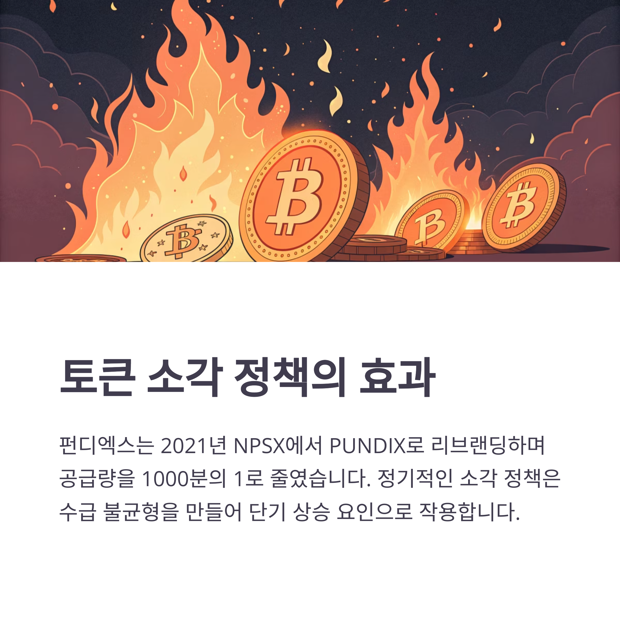 펀디엑스는 2021년 NPSX 토큰에서 PUNDIX로 리브랜딩하면서 공급량을 1000분의 1로 줄였습니다.