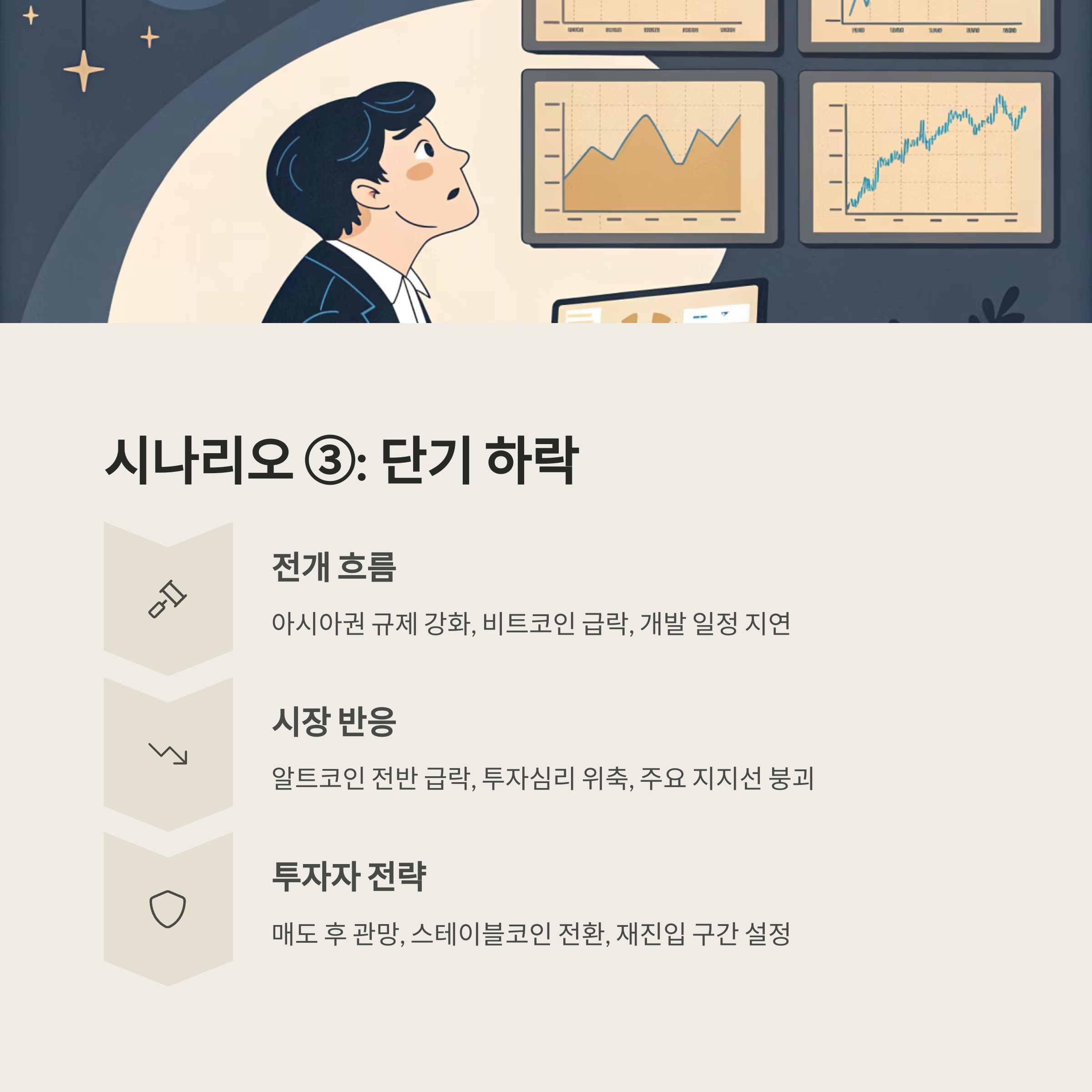 시나리오 ③ 단기 하락: 규제 이슈 + 시장 조정기 동반