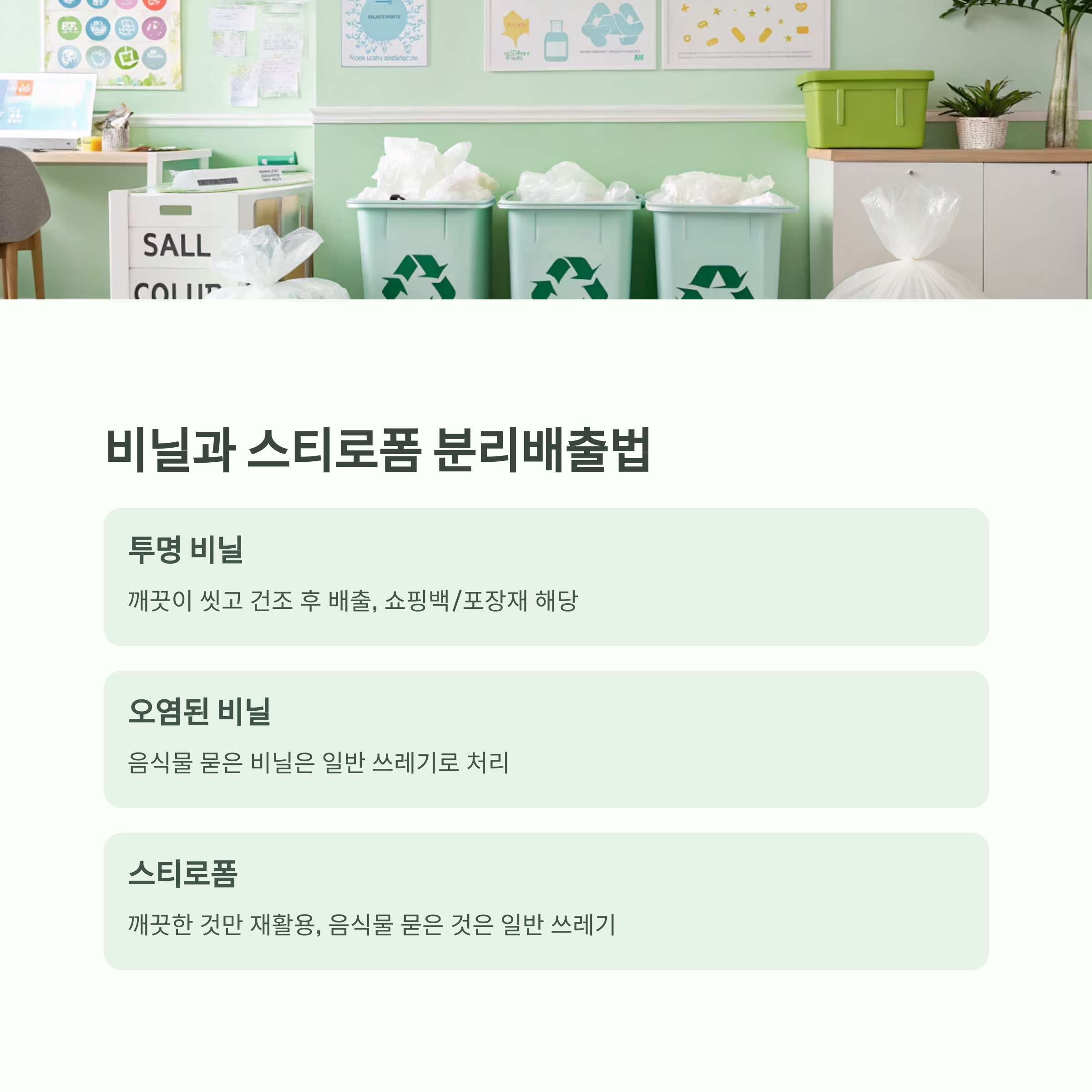 아래 표는 비닐과 스티로폼 분리배출 요약입니다.