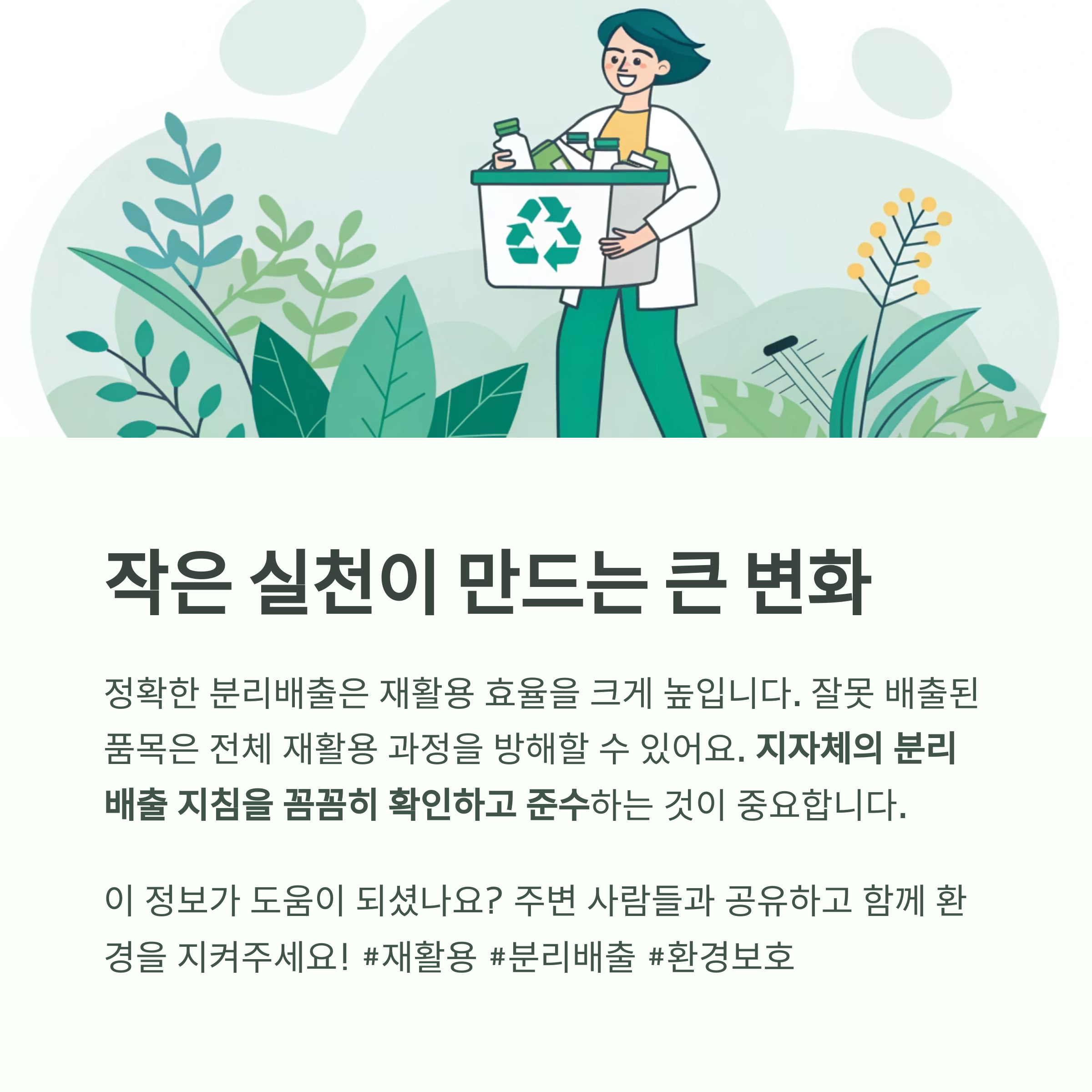 따라서 모든 재활용품은 해당 지자체의 분리배출 지침을 꼼꼼히 확인하고 준수하는 것이 필수입니다.