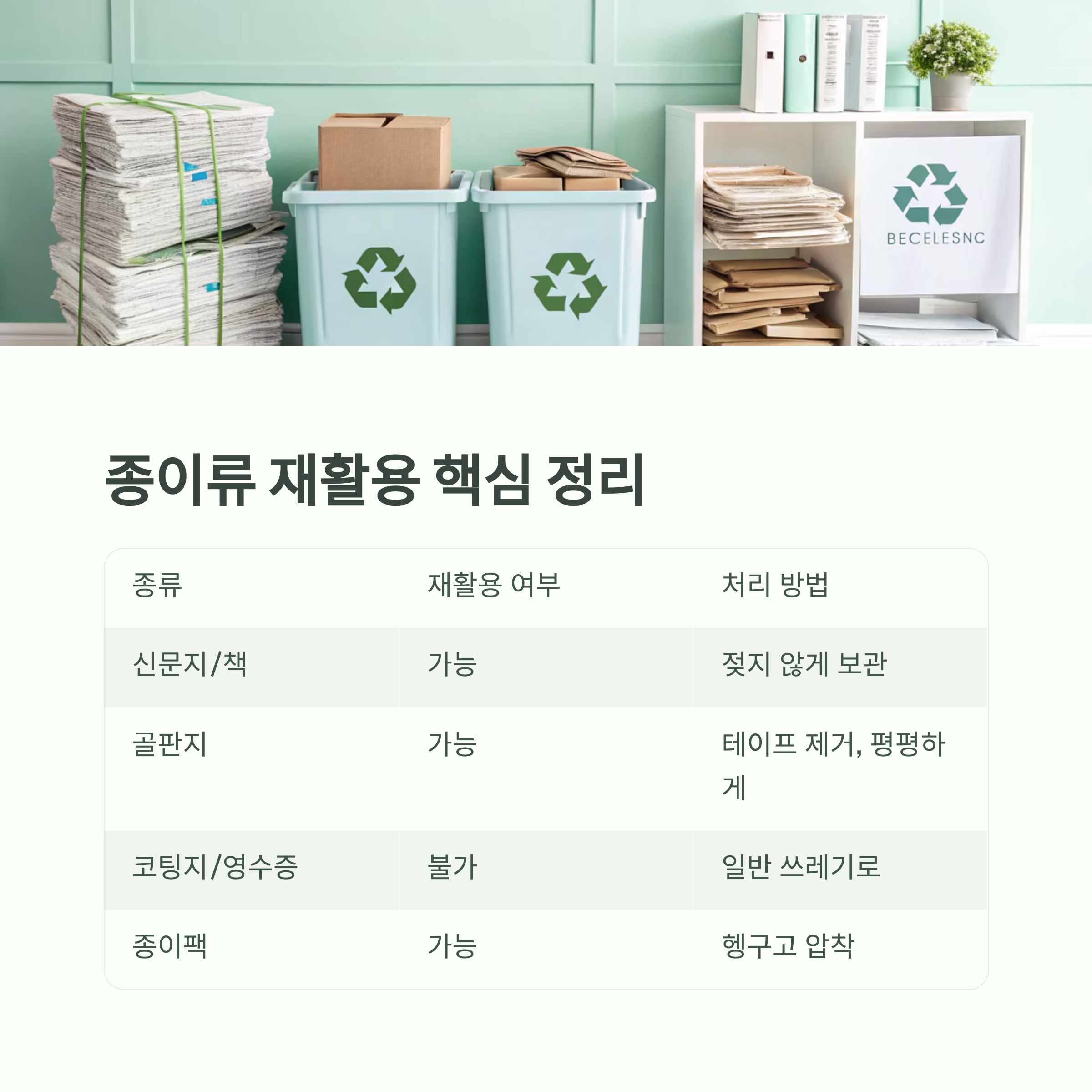 종이류 종류 재활용 가능 여부 배출 전 처리 방법 비고