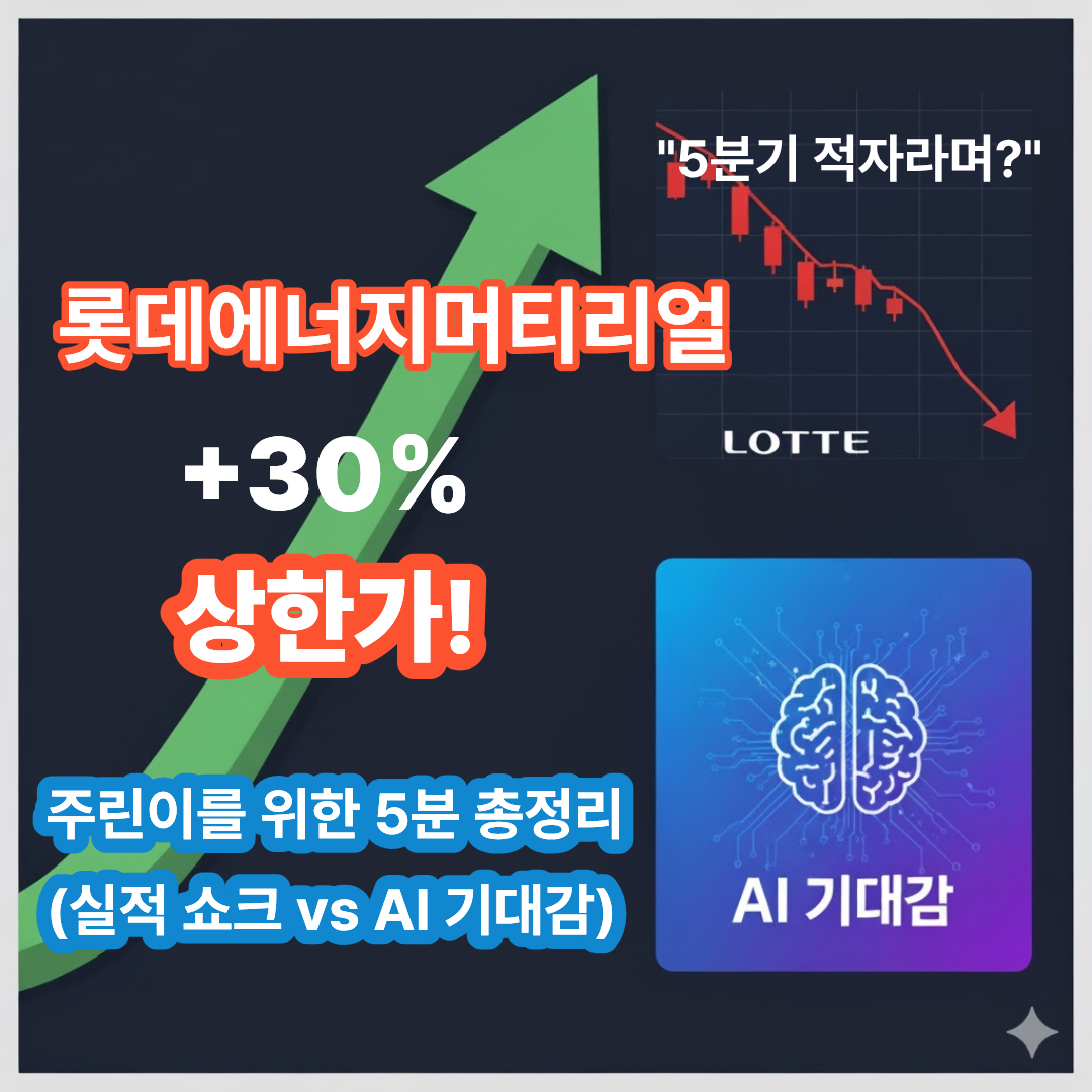 시장은 "롯데에너지머티리얼, 너희 전기차 때문에 5분기나 적자 보고 힘들었지? 근데 'AI'라는 엄청난 구원투수가 등판했구나! 이제 너희는 AI 관련주다!"라고 반응한 겁니다.