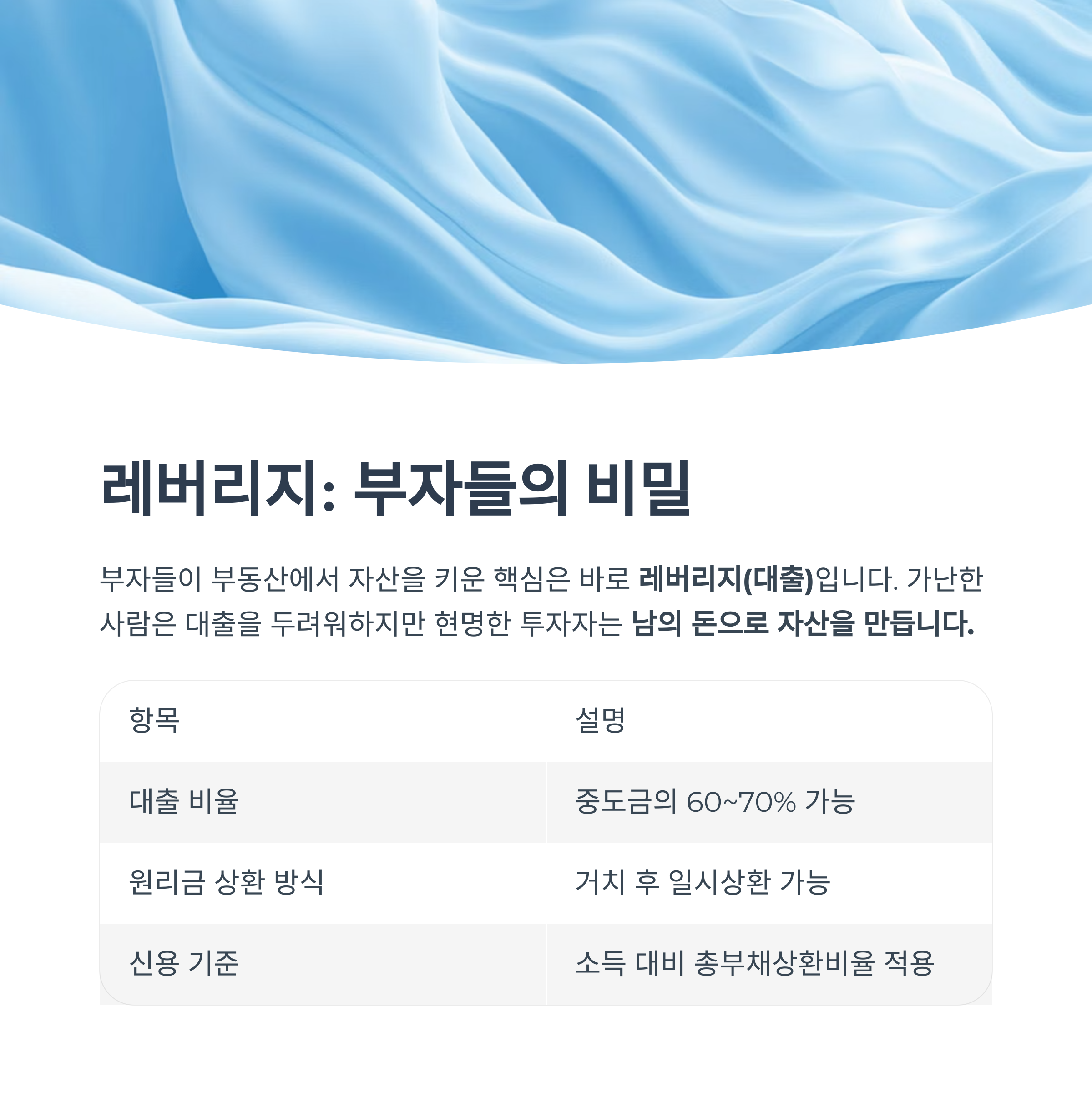 부자들이 부동산에서 자산을 키운 핵심은 바로 **레버리지(대출)**입니다.
