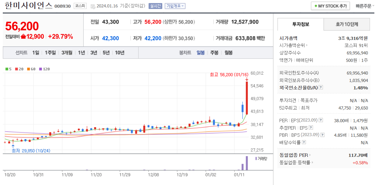 한미사이언스는 한미약품 그룹의 경영권 분쟁 소식 이슈로 오늘 거래대금만 6338억 나오면서 상한가 마감을 했습니다.