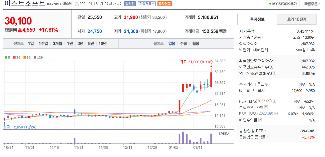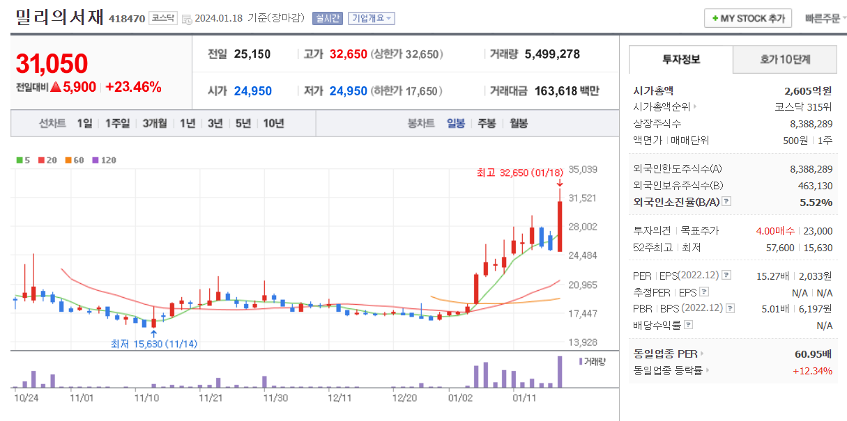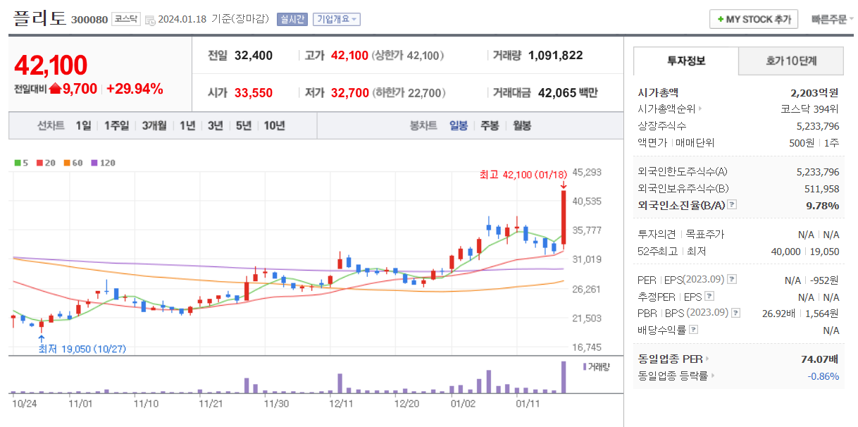 오늘 상한가 이슈로는 삼성전자 갤럭시 24시 리즈 공개 중 AI 관련주들이 크게 움직였는데 이 회사