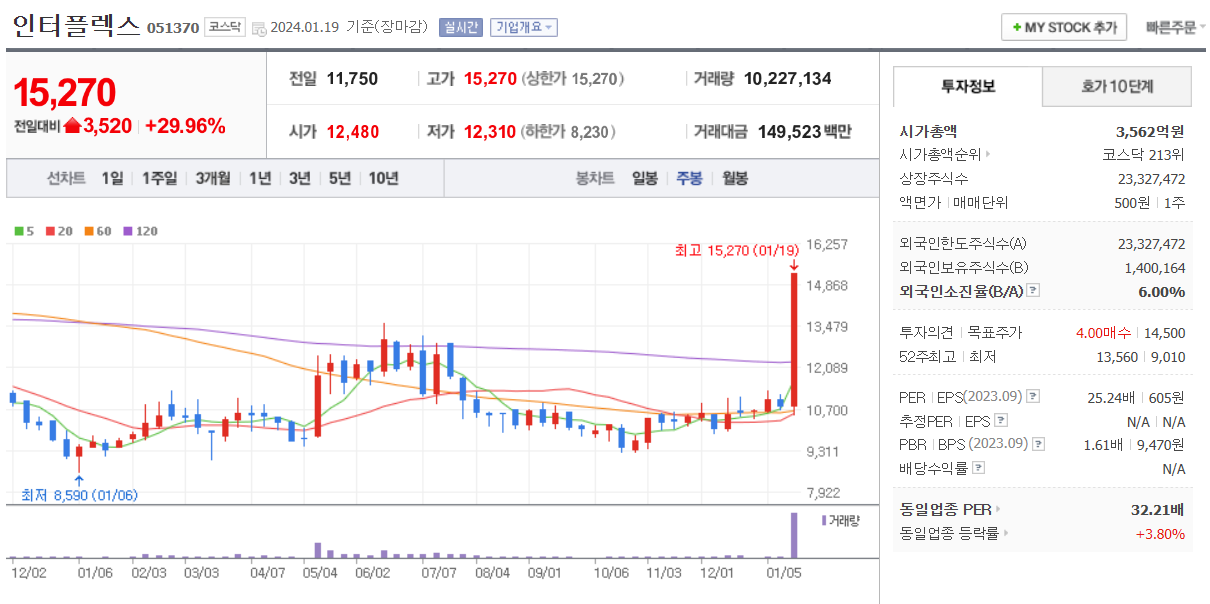 월요일도 상승가능성이 높아 보이고 인터플렉스 회사의 주가도 함께 보면 좋을 듯합니다.