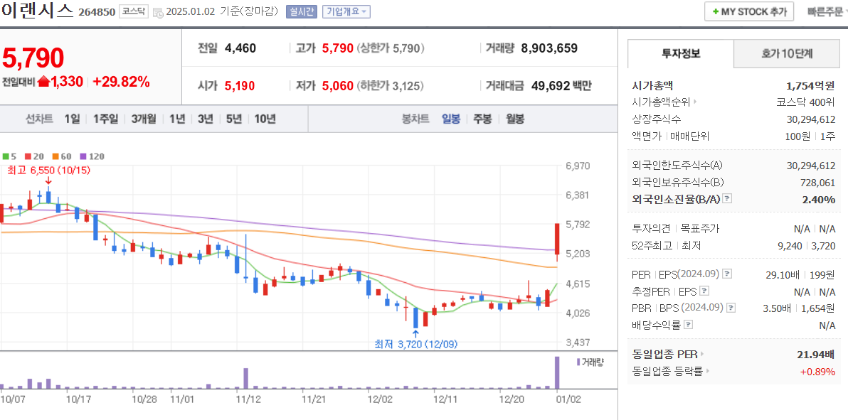 | 오늘의 주식 시황 정리(1월 3일 금요일 주식 상한가 종목 및 특징주) (2) | 2025.01.03 |