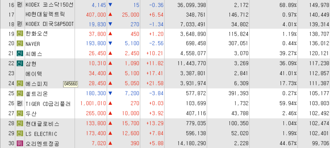 그리고 이재명 관련주도 상위에 올랐습니다.
