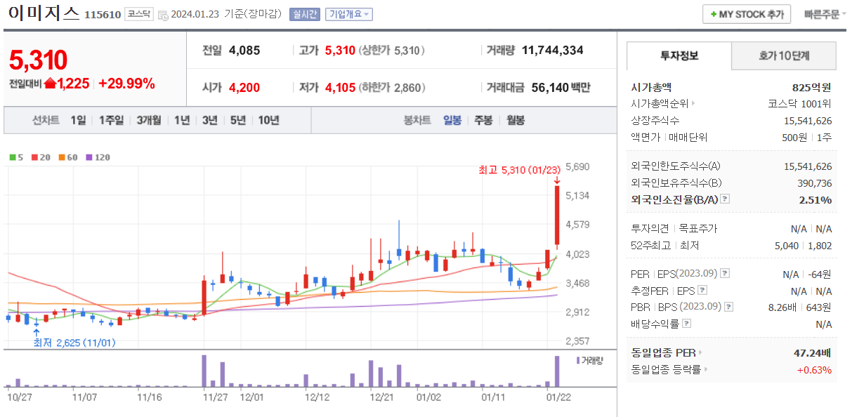 이종목은 코스닥 종목으로 오늘 거래량 증가와 함께 상한가 마감을 했습니다.
