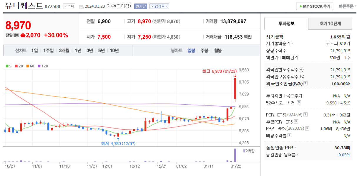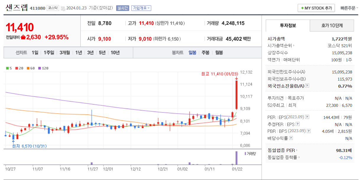 1월 23일 주식 상한가 종목