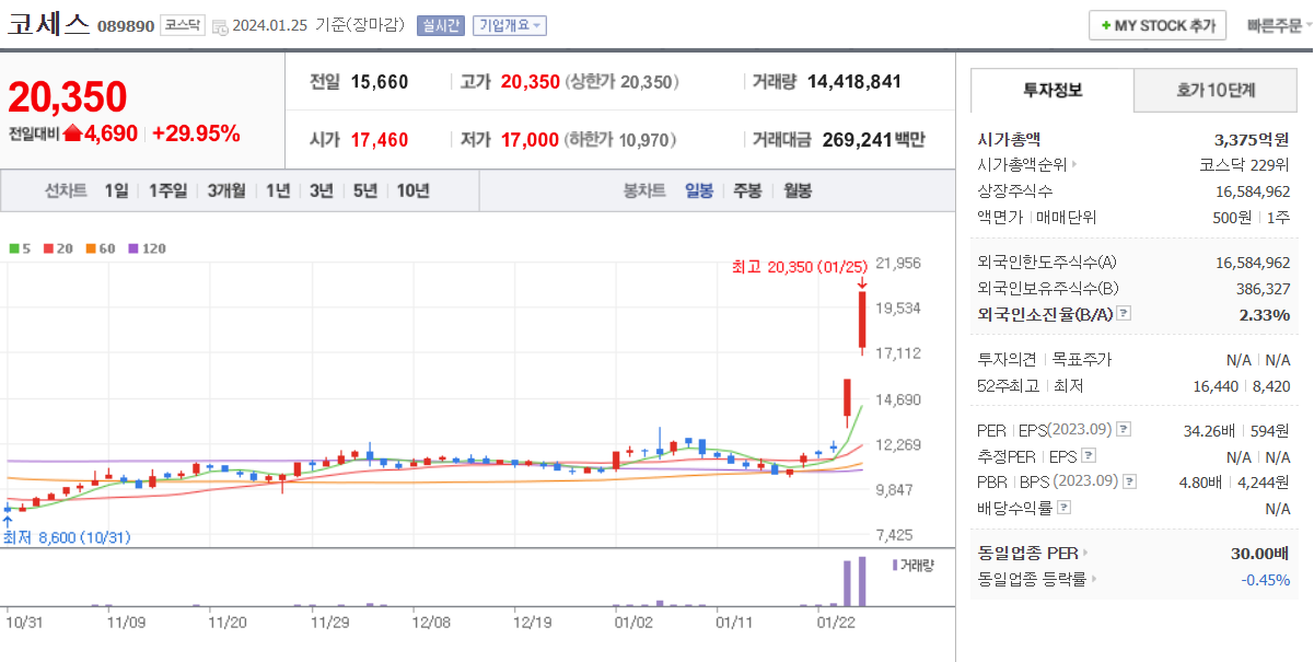 | 1월 23일 주식 상한가 종목 (1) | 2024.01.23 |