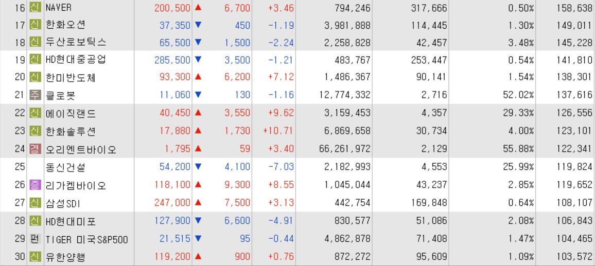 오늘의 거래대금 상위종목