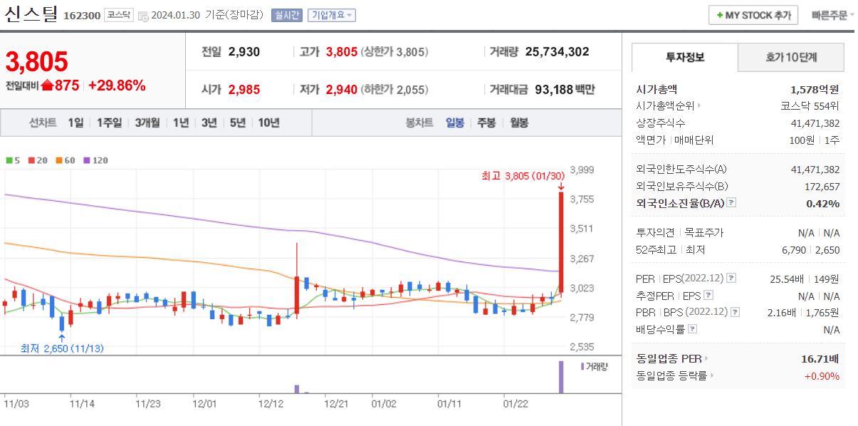 1월 30일 주식 상한가 종목