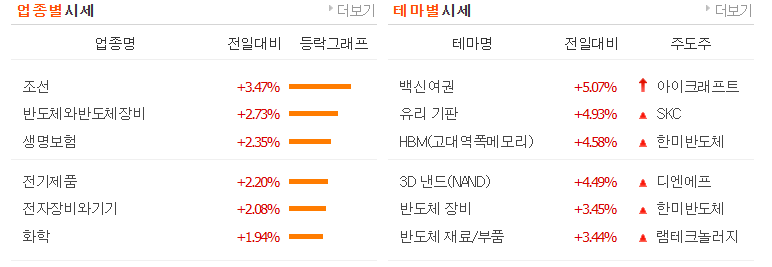 오늘 시장 좋은 흐름을 보이면서 상승으로 전환을 했고 코스피시장에서 주도섹터인