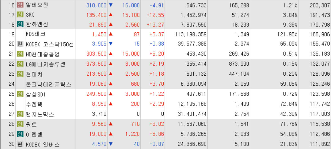오늘 상한가 이유로는 특별한 이슈는 없지만 오늘 거래대금이 300억 원 넘게 발생하면서