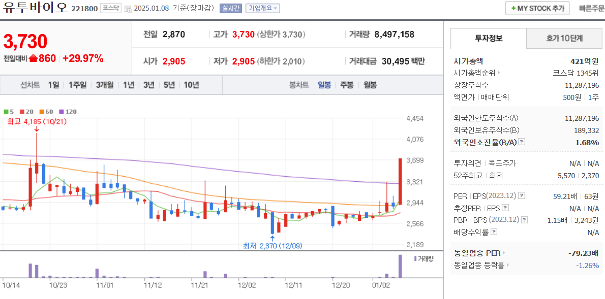 | 오늘의 주식 시황 정리(1월 3일 금요일 주식 상한가 종목 및 특징주) (2) | 2025.01.03 |