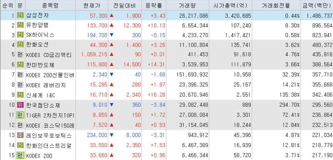 오늘 거래대금 상위 종목에서는 유한양행 종목이 크게 상승을 보이면서 2위에 올랐고 양자암호, 로봇이