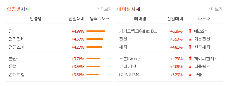 상위에 올라왔습니다. 반도체, 비만치료제, 출판 관련주도 크게 상승을 하면서 상위권에 올라왔습니다.