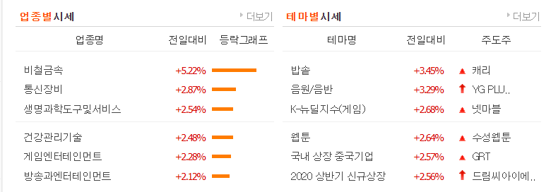 오늘 시장에서는 통신장비 관련주들이 크게 상승을 보였고 블랭핑크 이슈로 인해 엔터주들도 상승을