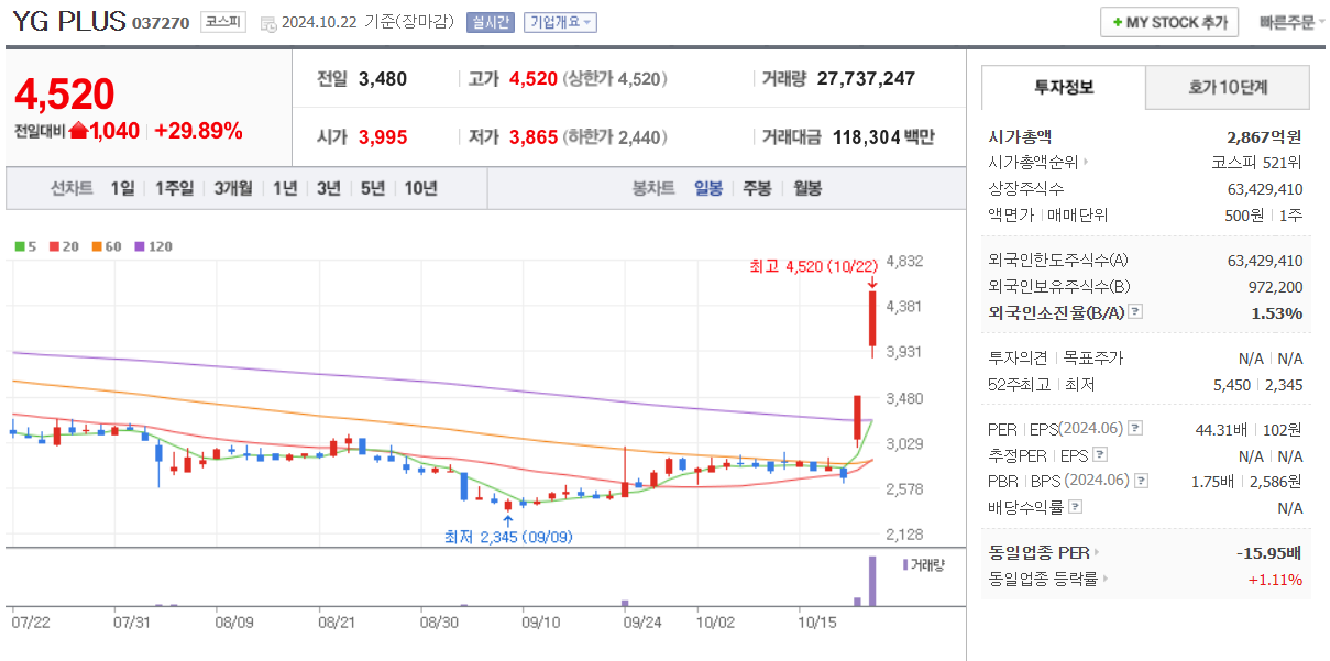 로제 - YG PLUS( 상한가), 모비데이즈(상한가), 지니뮤직(13%), 와이지엔터테인먼트(6.16%)