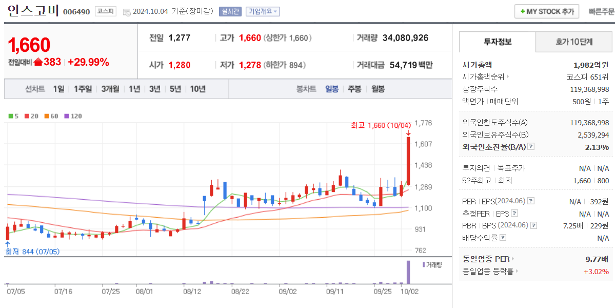 바이오 (개별이슈)- 인스코비(상한가), 팬젠(상한가), 바이오인프라(21.82%), 와이바이오로직스(19.48%)