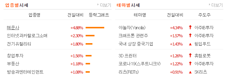 오늘은 스페이스 X관련테마와 해운사 실적이슈로 인해 상승을 보였습니다.