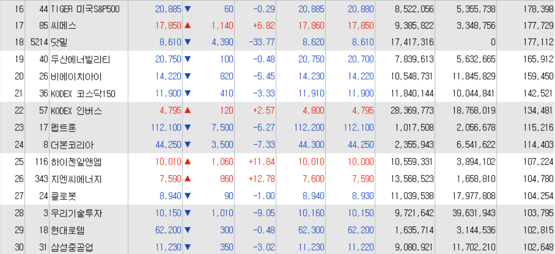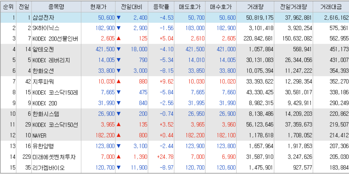 거래대금은 10조 8637억 원이 나오면서 어제보다 2조 원가량 줄어들었습니다.
