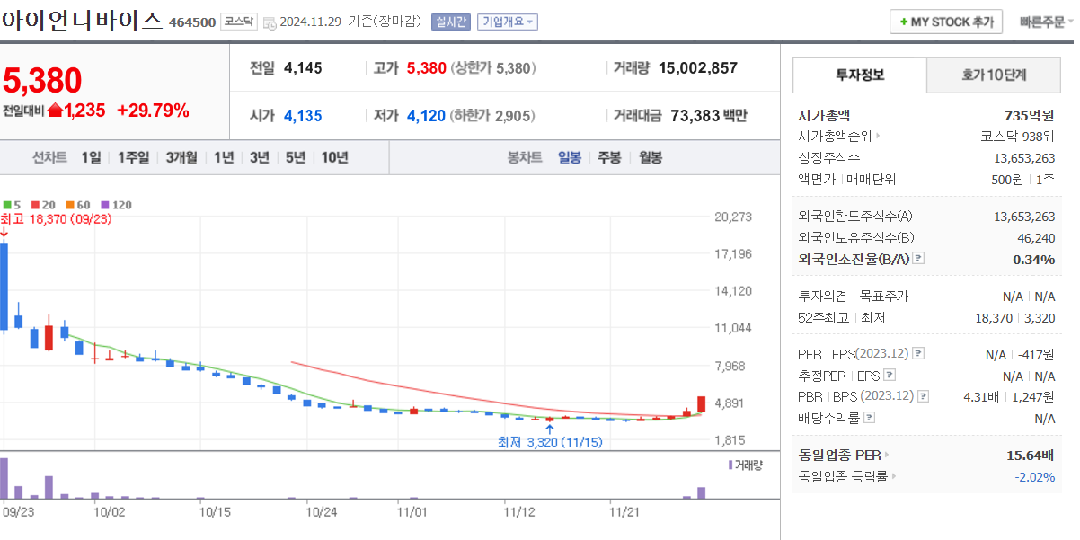 신규상장주- 아이언디바이스(상한가) , 닷밀(8.84%), 제닉스(5.53%)
