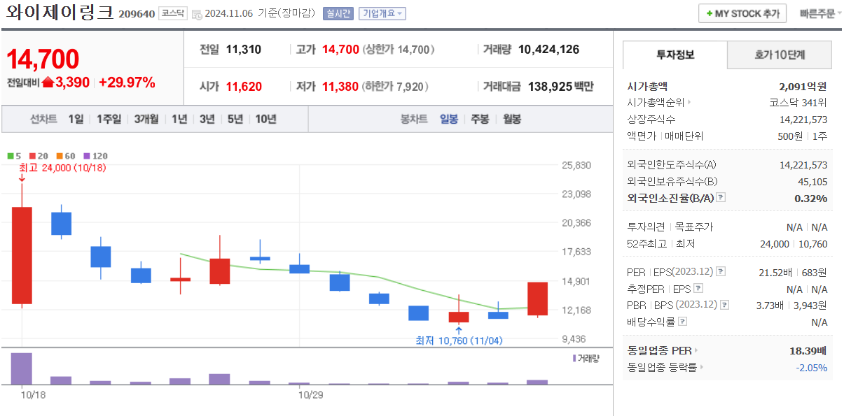 -와이제이링크(상한가) - 트럼트 당선 가능성 이슈