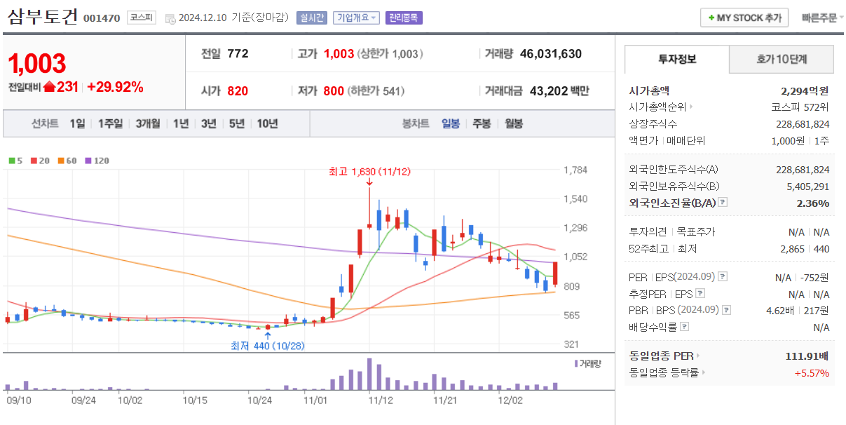 | 12월 3일 주식 상한가 종목 및 시황 정리 (3) | 2024.12.03 |