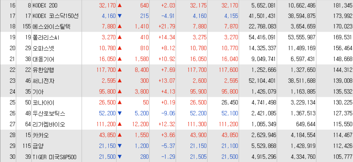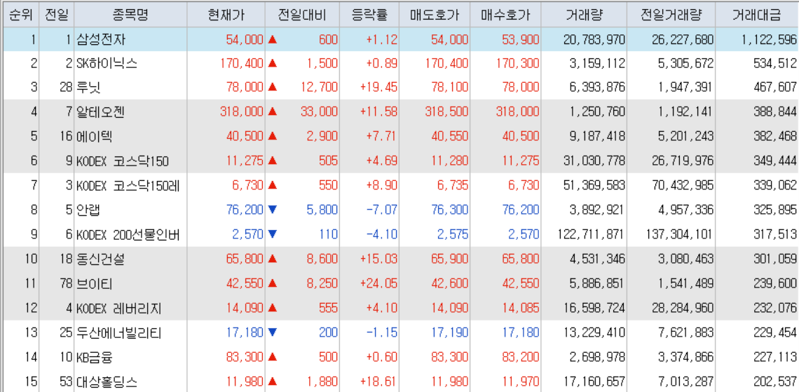 오늘의 거래대금 상위종목