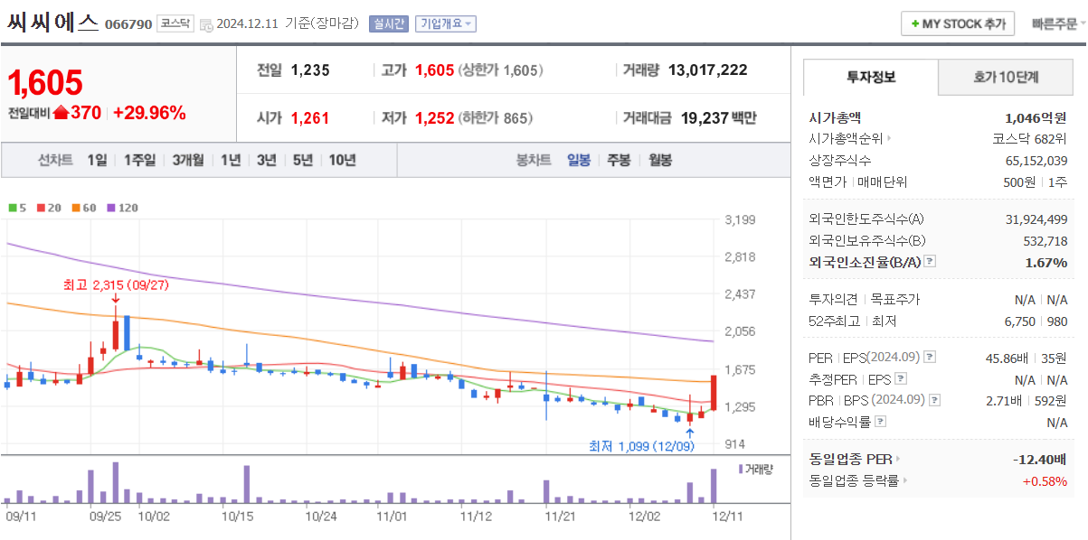 | 12월 10일 주식 상한가 종목 및 시황 정리 (1) | 2024.12.10 |