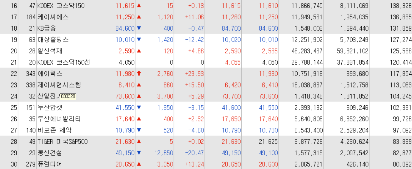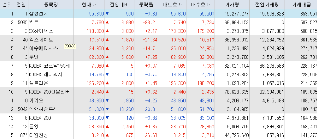 오늘의 거래대금 상위종목