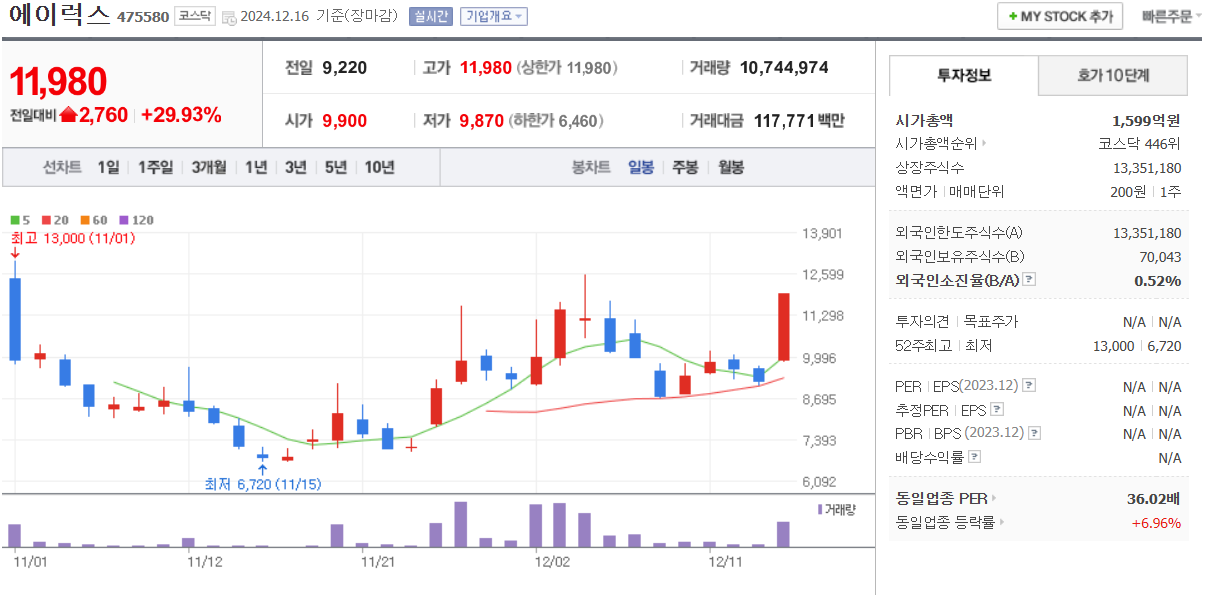 98% 상승 마감을 했습니다. 신규상장주가 전강후약을 계속 보이고 있습니다.