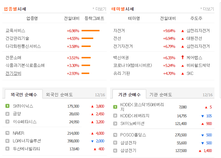 시가 총액 상위 종목에서는 sk하이닉스가 상승을 보였고 바이오, 인터넷, 게임에서 상승을 했고
