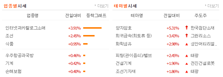 화장품, 조선에서 좋은 수급이 들어오면서 상승했습니다.