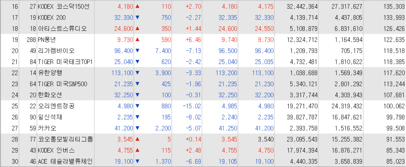거래대금은 8조 2949억 원으로 어제보다 소폭 줄어들었습니다.