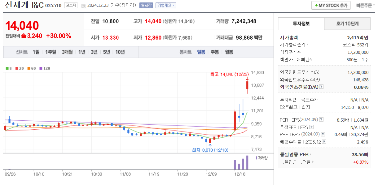 | 12월 24일 주식 상한가 종목 및 시황 정리 (3) | 2024.12.24 |