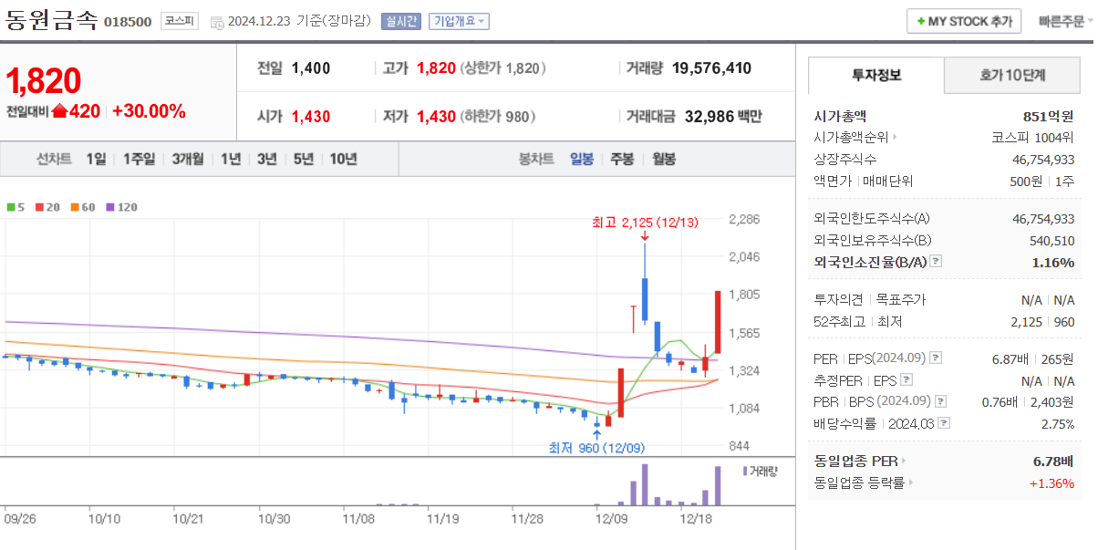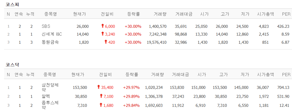 따른 이슈로 인해 이종목도 상한가 마감 한 것으로 보입니다.