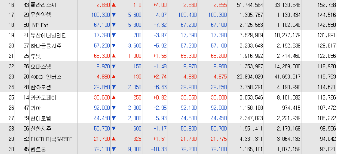 오늘의 거래대금 상위 종목에서는 안철수 테마주인 안랩이 25% 넘게 상승하면서 상위에 올랐고