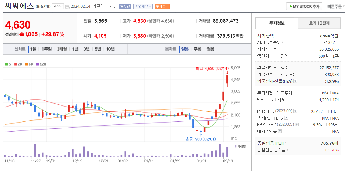 시가총액이 너무 적어서 다루지 않았지만 최근 비슷한 종목으로 씨씨에스 종목이