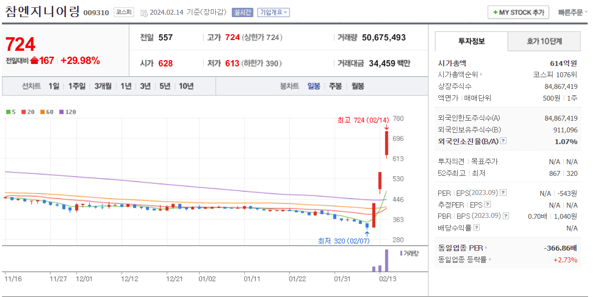상한가 이유로는 특별한 것이 없어 보이고 최근 저가 주식을 단기간 급등을 시키고 있는데