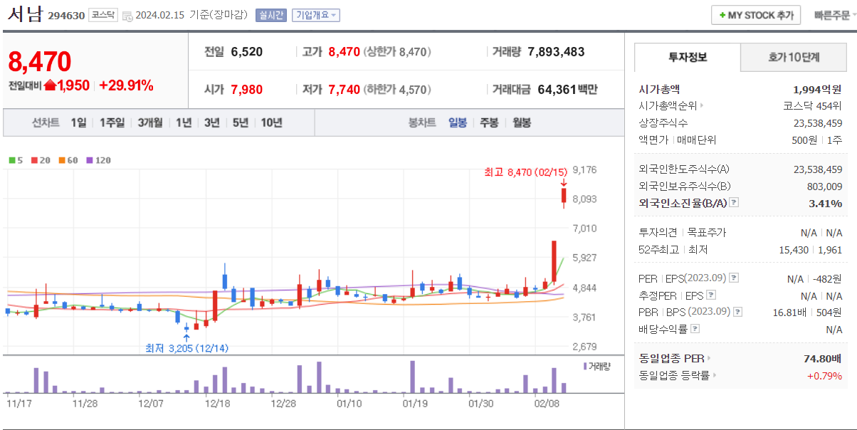 시총이 워낙 작아서 작은 거래대금으로 상한가를 쉽게 만듭니다.