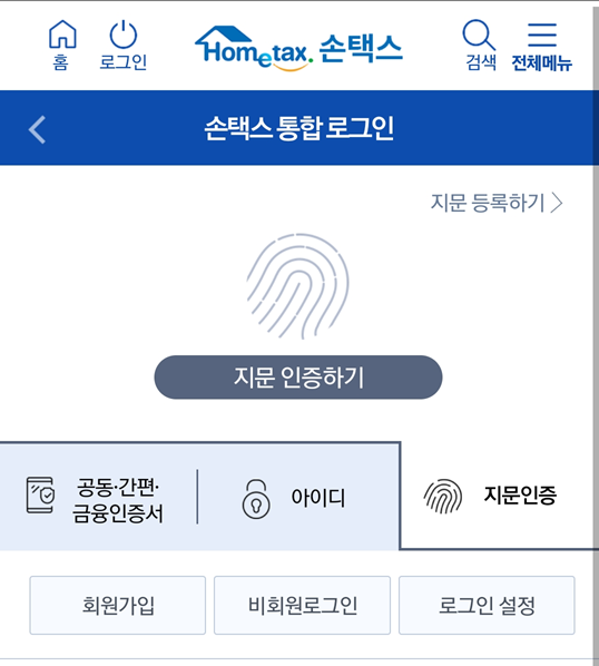 저는 휴대폰에 지문 인증을 하고 간편 인증서를 통해서 로그인을 했습니다.