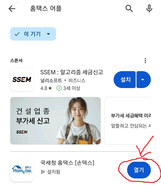 그리고 국세청을 입력하시면 , 손안에 국세청 홈텍스(손텍스)가 나옵니다.