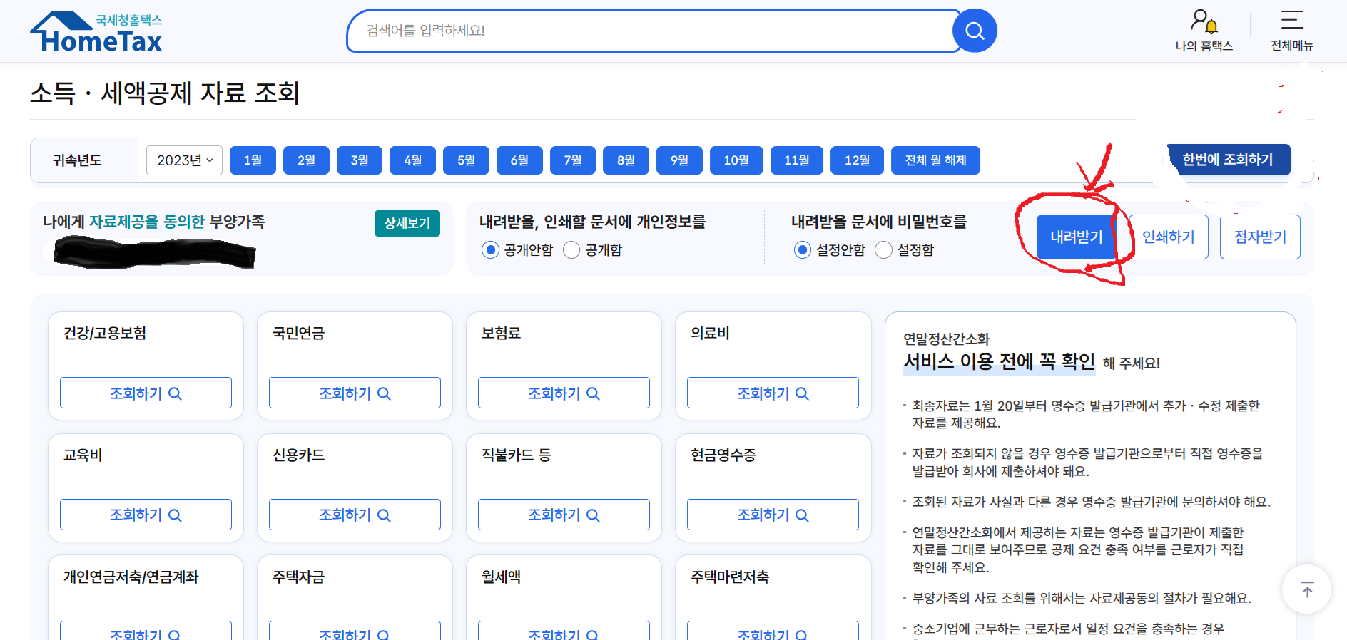 1월 15일 부터 간소화 서비스가 오픈되어 자료 확인이 가능하고, 1월 20일부터는 간소화 서비스에서